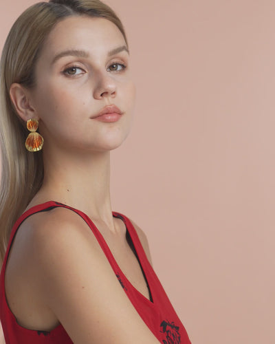 Gold Boho Ribbed Enamel Dangle Earrings - Sunburst