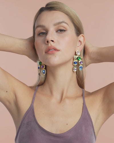 A shimmering cascade of resin stones set in hammered metal brings mod-art style to these drop earrings brimming with eclectic charm.