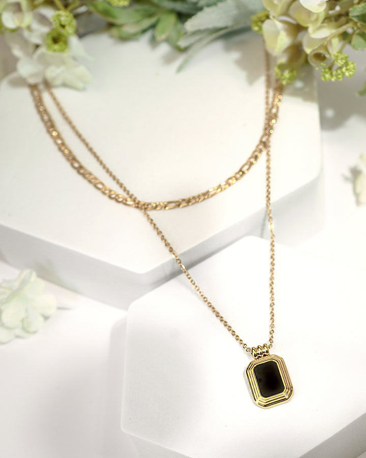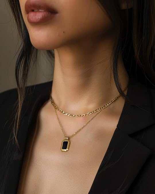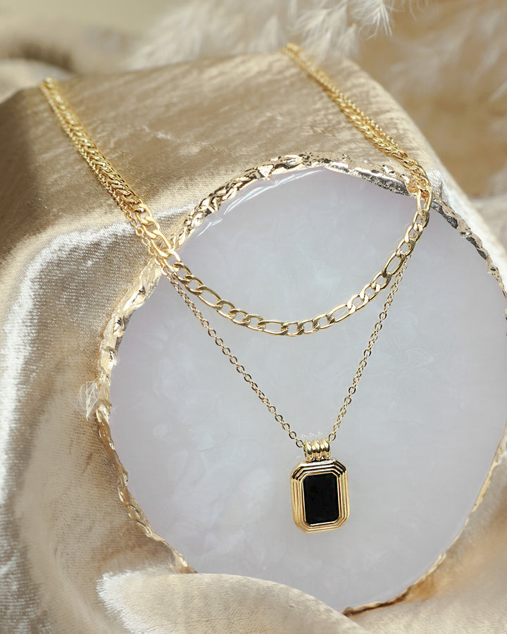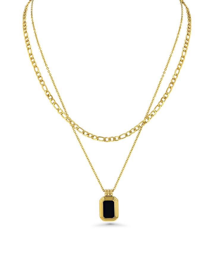Dimension:387mm Figaro chain, 413mm dainty smooth rolo chain, layered set.
