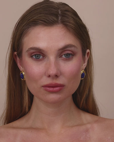 Our latest vintage-inspired earrings with 18k gold plating and navy enamel stone. These pieces exude old Hollywood glamour and add a classy touch and glamour to your outfits.