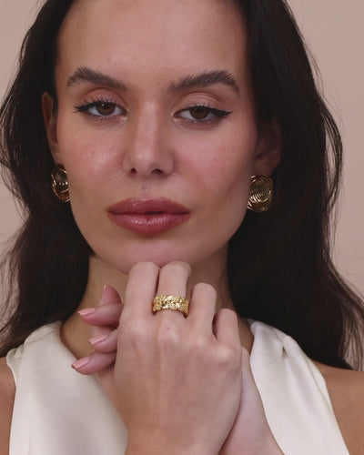 Gold Floral Petal Patterned Adjustable Ring