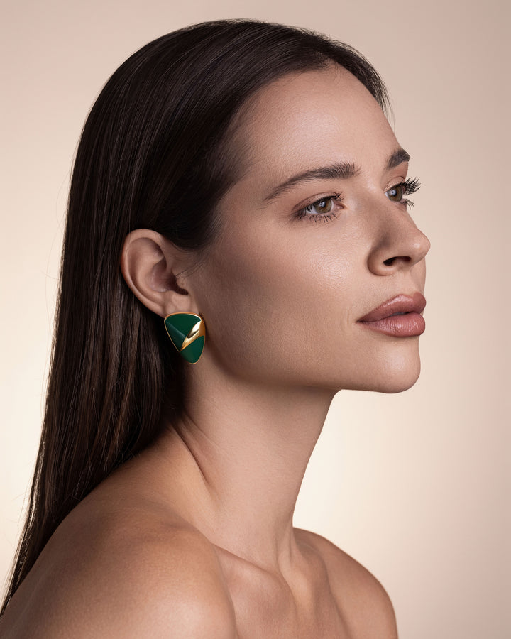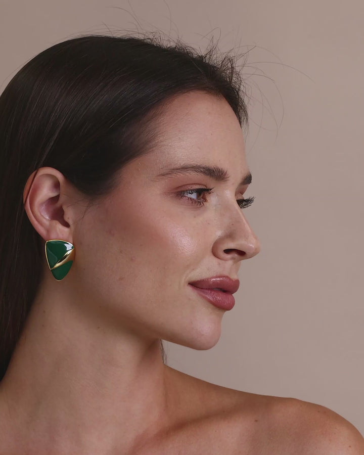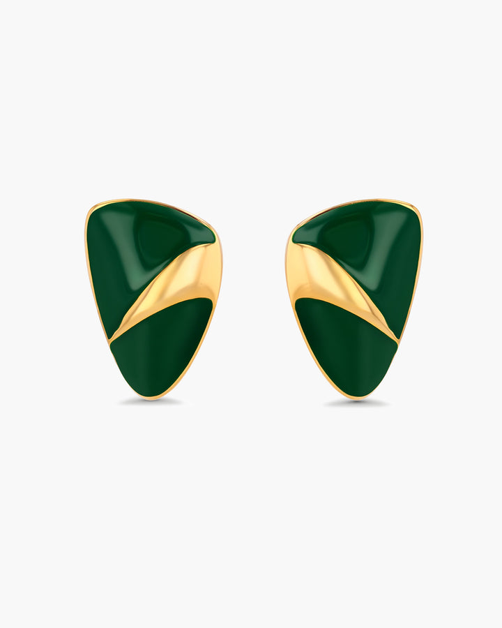 #91 Dark Green Enamel Gold Shield Stud Earrings