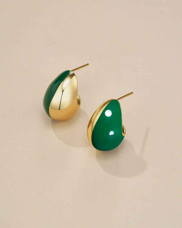 #269 Green Enamel Gold C-Shaped Stud Earrings