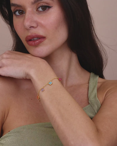 Gold Colorful Gemstone Charm Tennis Station Bracelet
