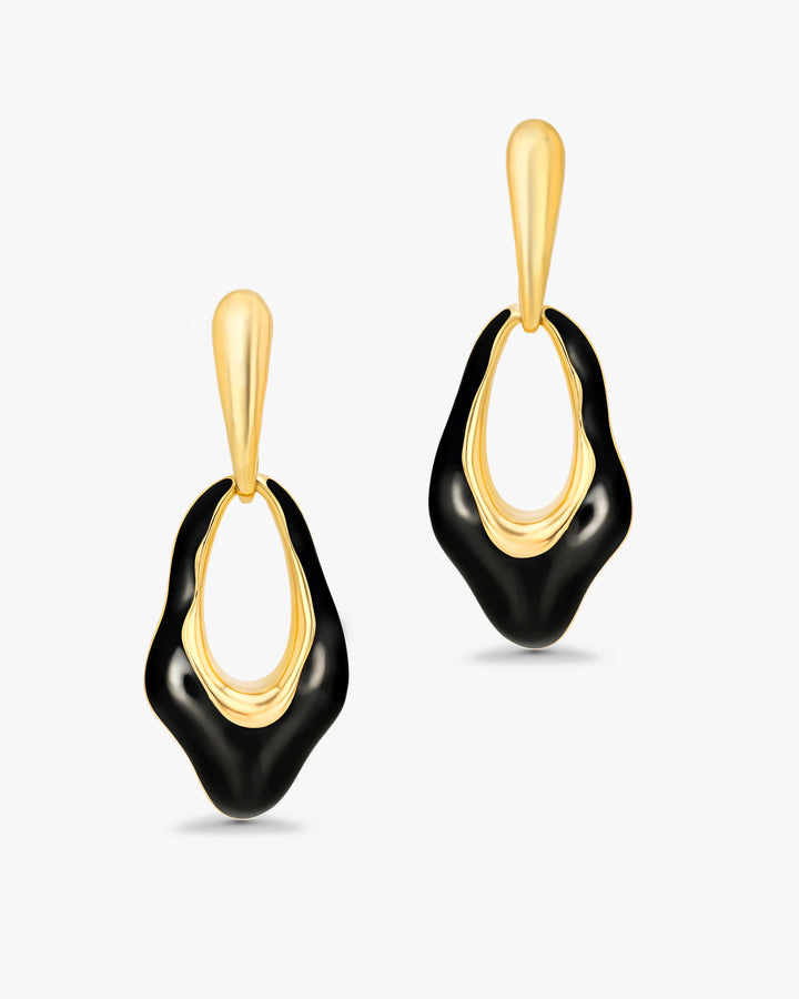 Elevate your look with these trendy small chunky geometric dangle earrings featuring black resin enamel and 18K gold plating. Perfect for daily wear or special occasions—from vacations and festivals to weddings and holidays—they offer a chic boho vibe with lightweight, waterproof, and hypoallergenic design. Made from premium, nickel-, copper-, and lead-free materials, these earrings ensure lasting shine and comfort for sensitive skin.