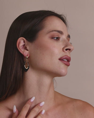 Irregular Oval Gold Black Enamel Dangle Earrings