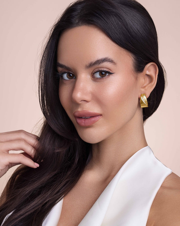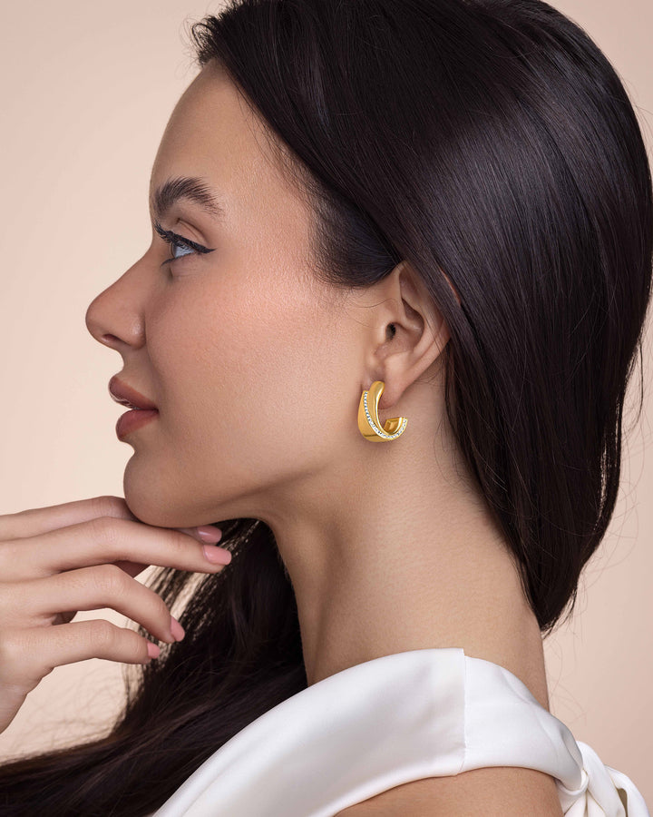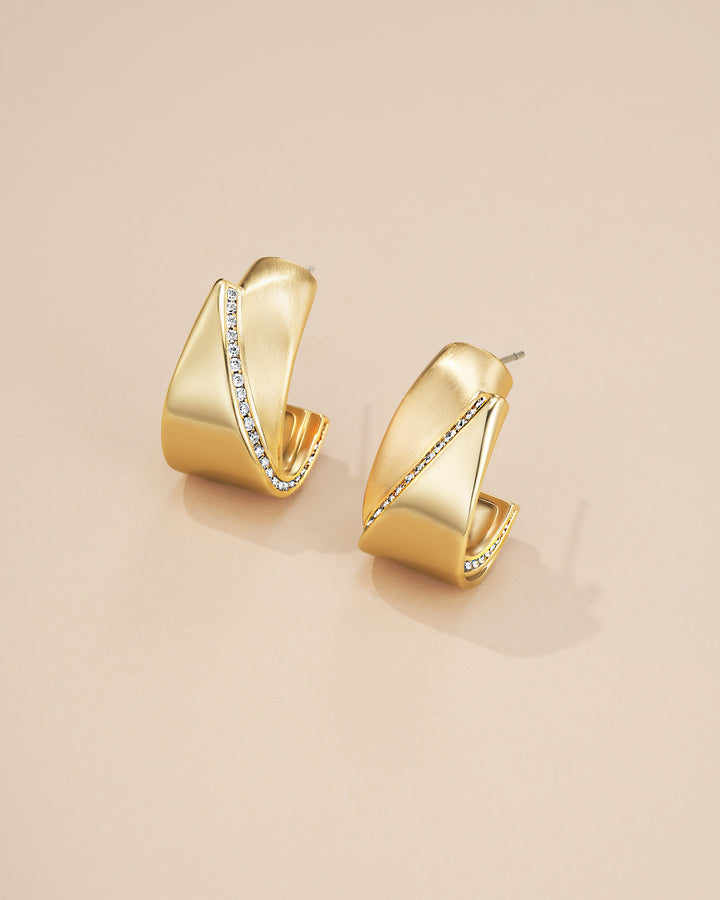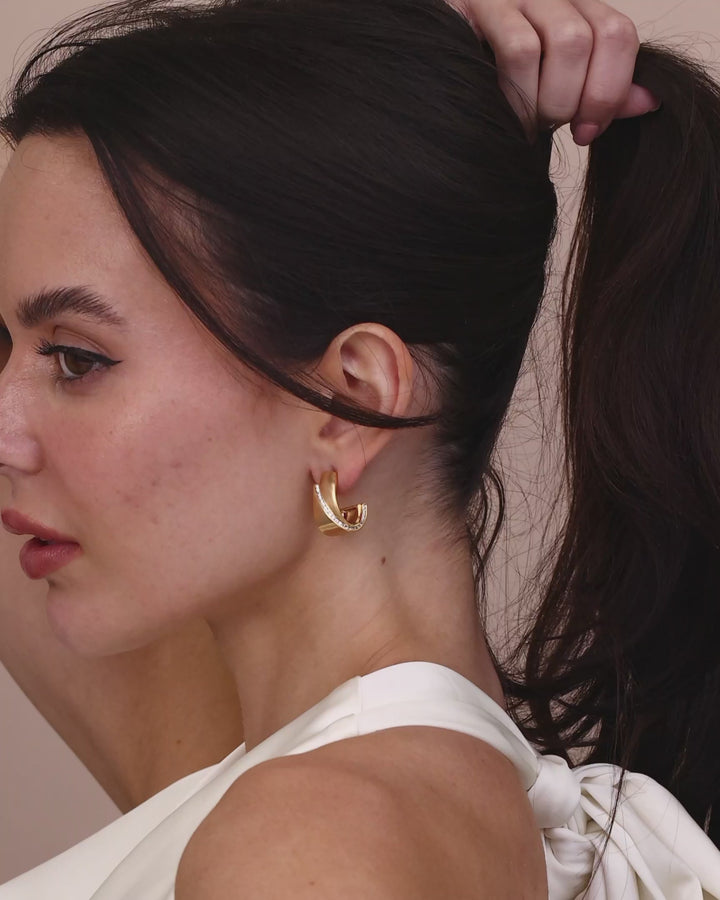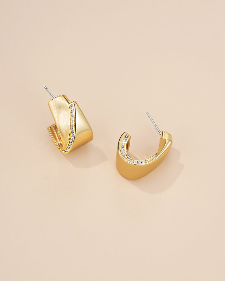 #206 Chunky Curve Twisted Open Hoop Statement Stud Earrings with Cubic Zirconia