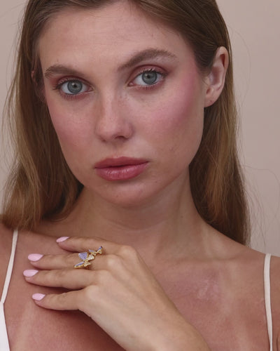 Gold Purple Enamel Butterfly Ring with CZ