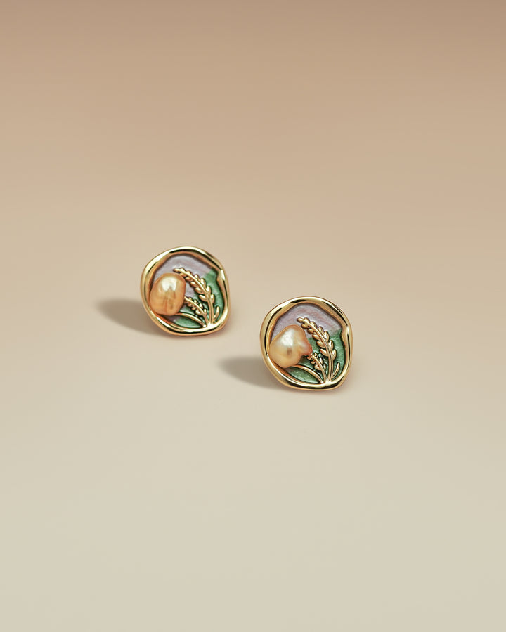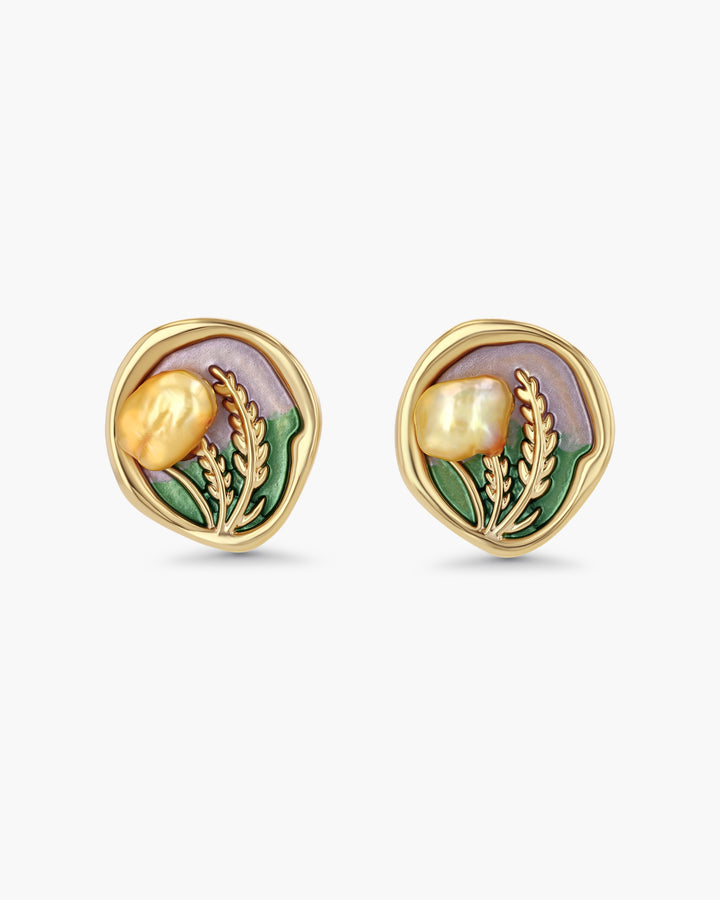 Material:Freshwater Pearl, Enamel, 18K gold plated brass.