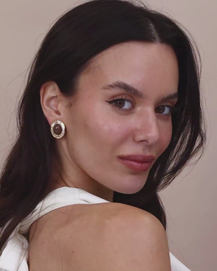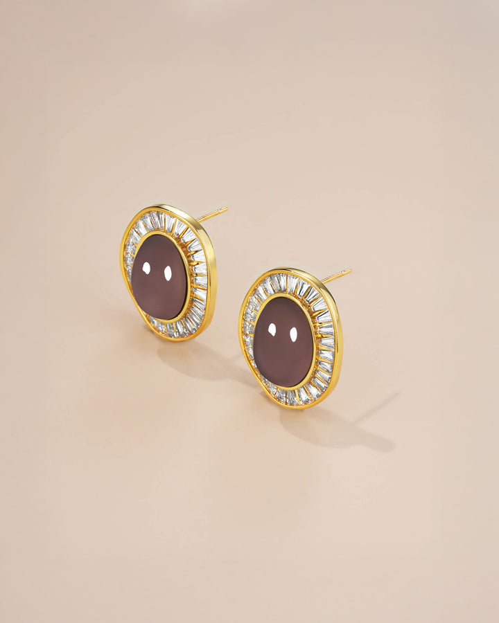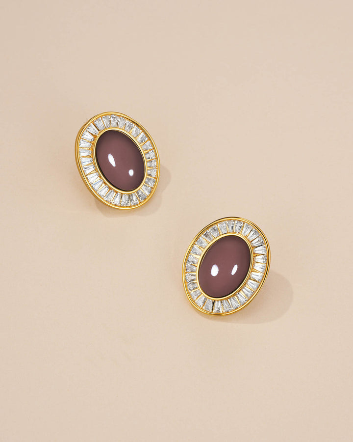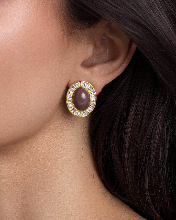 #283 Brown Beige Enamel Dome Stud Earrings with Cubic Zirconia