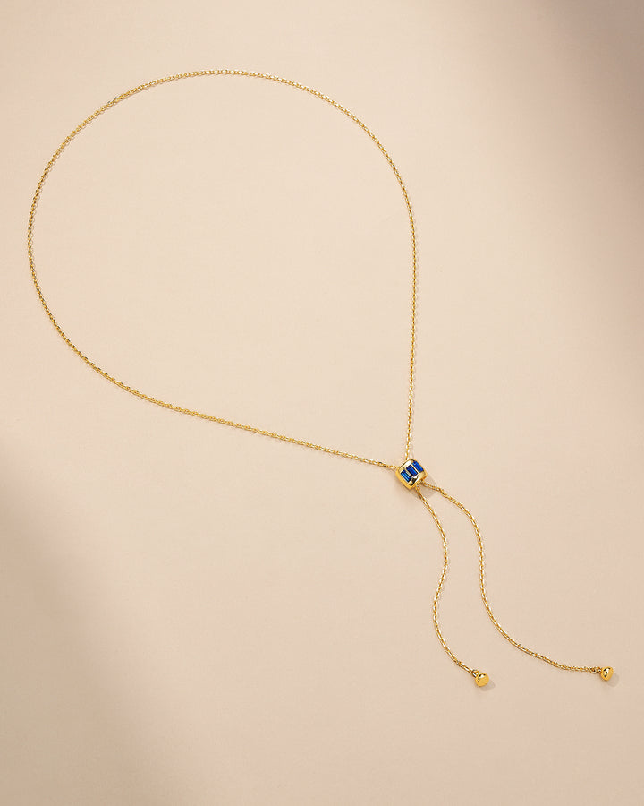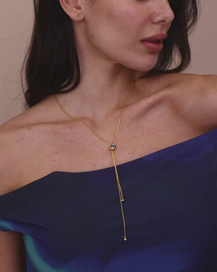 Elevate your look with this adjustable necklace featuring shimmering blue sapphire CZ accents and a sleek tassel drop design. Perfect for everyday wear or special occasions, it offers a modern, elegant touch that’s lightweight, waterproof, and hypoallergenic—crafted from premium nickel-, copper-, and lead-free materials for lasting shine and comfort.