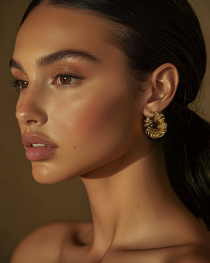 #6 Chunky Curve Spiral Twisted Hoop Earrings (Gold)