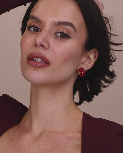A tropical yet elevated vibe emanates from artisan-crafted enamel floral studs.