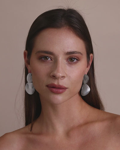 An elegant vintage and fun inspired earring with brushed finished. Irregular Double Disc Dangle.